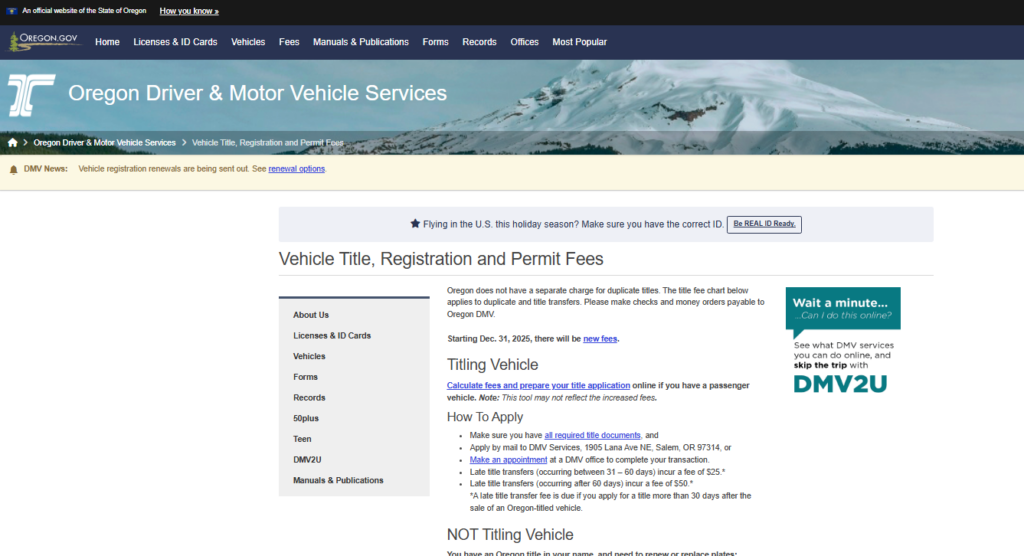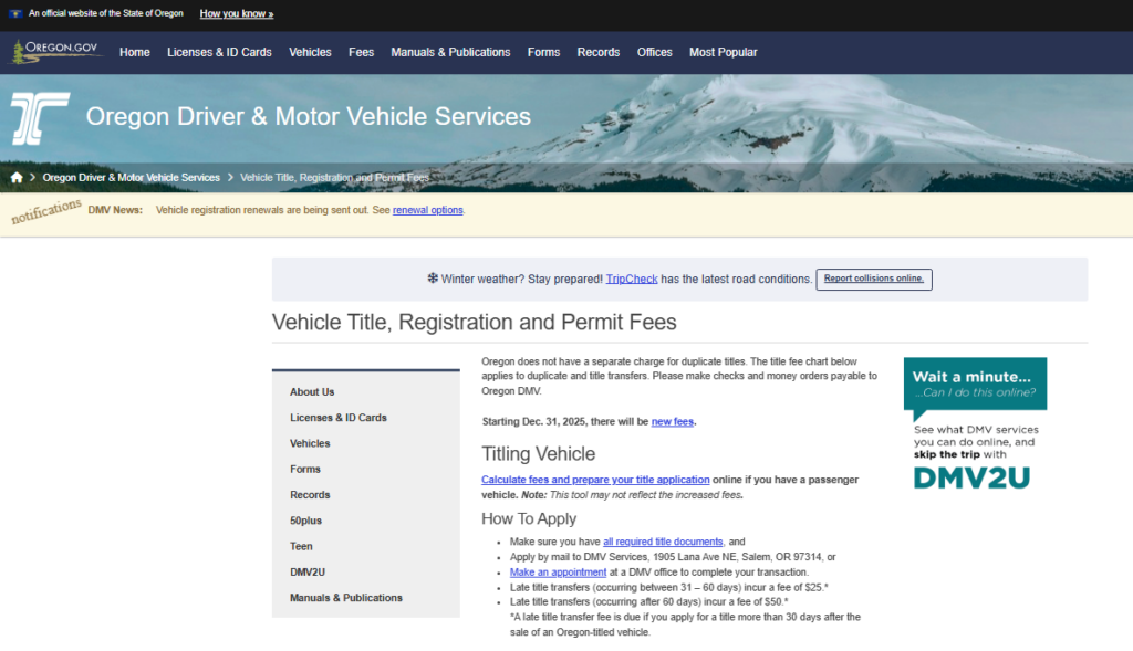When registering a car in Oregon, vehicle owners must pay separate https://www.oregon.gov/odot/dmv/pages/fees/vehicle.aspx# fees for license plates and titles. These charges vary depending on the type of vehicle, the plate chosen, and any additional administrative services required.